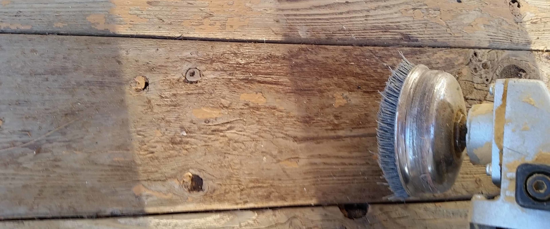 The idea here is to remove any sharp or protruding pieces of wood and blend the sanded area with the surrounding surface. If you work on handrails, you may want to follow 80 grit sanding with one that uses 100 grit paper. If the chipping covers a larger area, you can try using a cup brush. Usually, this tool is placed in a rotary disc grinder and has heavy bristles that are covered with an abrasive grain.